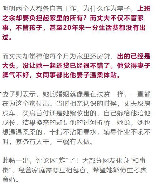 事件曝光后,迅速在网络上引起了热议。网友们纷纷发表自己的看法,有人指责男方过于自私,有人同情女方的不易,也有人认为这是婚姻的常态。在这场舆论的风暴中,真相却愈发扑朔迷离。